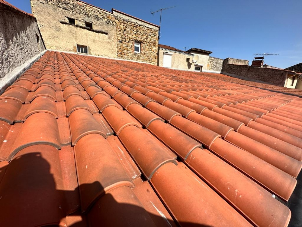 La couverture en galéane 12 de chez Monier et la zinguerie ont été réalisé par l'entreprise. Les moyens de levage sont assurés par les grues Klaas